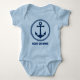 Costume de corps à une pièce pour bébé avec votre nom personnalisé, nom de bateau ou autre texte et une ancre marine personnalisée en bleu marine sur bleu clair en poudre. Fait un grand cadeau pour toute occasion.