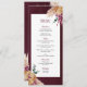 Bohème Automne Bourgogne Floral Mariage plat Menu