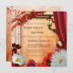 Une faire-part de mariage romantique avec des fleurs colorées sur un arrière - plan de style méditerranéen classique avec une lanterne et des feuilles d'automne. Cette invitation a des cartes RSVP correspondantes. Beau pour un mariage de automne.