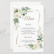 Elégant design de carte avec aquarelle vert aérée, blanc, fleurs crème, cadre faux or, sur un arrière - plan blanc. Utilisez l'outil Personnaliser pour ajouter vos informations. Pour les articles correspondants, veuillez visiter ma collection de fleurs blanches d'ivoire.