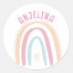 Boho arc-en-ciel rose enfants nom autocollant