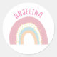 Boho arc-en-ciel rose enfants nom autocollant