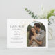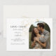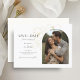 Ce mariage minimaliste moderne sauve la date des cartes plates comprennent une photo de couple d'arcs boho, une imitation délicate d'éléments floraux or et un ensemble contemporain de polices en noir jet. Le détail de la fleur est répété à l'arrière contre un arrière - plan en ivoire doux. Le design est contemporain et chic. Parfait pour le couple élégant et élégant.