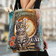 Sac fourre-tout personnalisé avec un design artistique bohème avec un chat assis sur un tas de livres. Ce sac fourre-tout de café, chats et livres est beau pour un amoureux des chats ou toute personne qui aime le café et la lecture de livres.