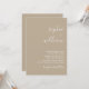 Cette faire-part de mariage beige moderne présente un design minimaliste avec des tons désert de beige boho terreux et une typographie moderne et propre. Le beige du Boho est un ton doux, saturé, chaud et neutre. Une suite mariage de coordination est disponible.