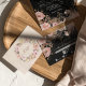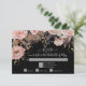 Boho Black Floral Rose Gold RSVP carte de réponse pour notre suite d'invitation complète. La réponse RSVP comprend un espace pour vos choix de menu. La palette de couleurs moderne et tendance de tons terreux chauds de cannelle, rose, blush, or rose, ambre, gris et charbon. Fleurs et feuillage aquarelles lâches et peints ont été peints par l'artiste et designer licencié internationalement, Audrey Jeanne Roberts, Copyright.