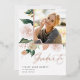 Élégant faire-part de graduation de photo florale présente une photo carré encadrée de fleurs d'aquarelle et de feuillage dans des tons de pêche, blanc, ivoire et vert sauge inspirés du désert de boho. La garniture en feuille d'or rose complète le look. Personnalisez avec le nom de votre diplômé, l'année de classe et l'école. Ajoutez un message personnel à l'arrière, ainsi qu'une photo supplémentaire.