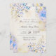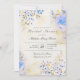 Customisez cette Eau Bleue Belle et Romantique Bleue Bleue Bleu Bleu Joli Floral Fête des mariées Invitation, avec vintage bohème, entièrement personnalisable et mis en modèle pour votre personnalisation facile. Vous pouvez également changer les angles de cette invitation qui fonctionnera parfaitement avec ce design.