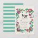 Une carte de réponse bohème avec un fond rayé bleu turquoise