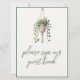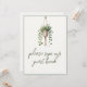 Présentant notre enseigne exclusive de livre d'or, un mélange étonnant de sophistication et d'élégance d'inspiration nature. Ce panneau présente une délicate aquarelle illustrant un plante suspendu, astucieusement suspendu dans un cintre chic en macramé. Le design dessiné à la main dégage une sensation de sophistication éblouissante, ce qui en fait l'ajout parfait à tout événement moderne et élégant. Les teintes vertes douces du plante, associées à la typographie raffinée, créent une esthétique chic et sans effort, intemporelle et contemporaine.