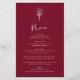 Ajoutez ces cartes de menu floral minimaliste personnalisables au paysage de table de votre événement. Il dispose d'une ligne moderne de bouquet floral avec calligraphie géologique. Personnalisez cette carte de menu boho en ajoutant des noms, des dates et des choix de repas. Cette carte à la carte bordeaux est parfaite pour les mariages, les baby showers, les douches nuptiales, les anniversaires, et bien plus encore.