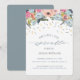 Les fleurs roses, bleues et grises en cascade ont de la feuille d'or et des arroses bleues poussiéreuses qui tombent de leurs feuilles. Un petit boho avec un peu de glamour, cette invitation à la douche d'arrosage de bébé ouvre la voie à l'arrosage de votre bestie fabuleusement chic.