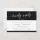 Cette carte rsvp de choix de menu chic boho est parfaite pour un mariage minimaliste. Le design bohème moderne noir foncé, sophistiqué et chic, se compose d'une calligraphie rustique simple au style unique mais classique. Inclure les options de repas pour votre réception sur la carte de l'enceinte.
