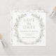Chic et sophistiqué, cette invitation à la photo Save the Date capture l'essence d'un mariage boho avec son design botanique rustique élégant. Dotée de feuilles verdoyants et de fleurs blanches délicates, cette invitation donne le ton parfait pour une célébration mariage d'inspiration nature, jardin ou extérieure.