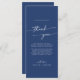 Cette carte de place boho chic royal bleu remerciement est parfaite pour un mariage minimaliste. Le design bohème moderne bleu foncé et audacieux présente une calligraphie rustique simple avec un style unique mais classique. Personnalisez votre carte de table de réception avec vos noms et une note attentive pour vos invités, votre famille et vos amis.