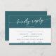 Cette carte rsvp chic et turquoise au menu boho est parfaite pour un mariage minimaliste. La tonalité audacieuse turquoise de bijou moderne design bohème dispose de calligraphie rustique simple avec un style unique mais classique. Inclure les options de repas pour votre réception sur la carte de l'enceinte.