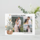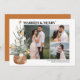 Partagez vos photos de mariage préférées avec cette carte Marié et Joyeux Noël. Il dispose d'un collage classique de 3 photos qui est très facile à customiser. Joyeux et Marié est écrit en haut dans une police populaire et tendance. Un arbre de Noël très Boho dans un panier à cordes et des ornements blancs et dorés donne l'ambiance.