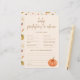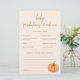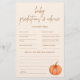 Un délicieux mélange de charme festif et d'amusement chaleureux parfait pour tout baby shower d'automne. Ce jeu sans distinction de genre est orné d'éléments boho chic et de motifs citrouilles colorés, qui s'adaptent parfaitement aux douches bébé garçon et bébé fille. Avec ses motifs citrouilles orange et bleu, il incarne l'esprit de l'automne tout en offrant un espace créatif pour partager ses prédictions et ses conseils. Idéal pour ceux qui recherchent des idées de baby shower citrouille ou citrouille, ce jeu ajoute une touche personnalisée à votre célébration, ce qui le rend mémorable pour tous les participants.