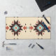 A Southwestern-inspired geometric emblem featuring bold diamond shapes, earthy red and brown tones, and vibrant turquoise accents. The distressed texture adds a handcrafted, vintage feel, giving this design a strong boho-tribal aesthetic.