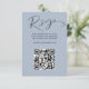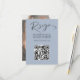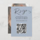 Cette carte RSVP moderne allie élégance et commodité avec une typographie contemporaine et propre sur un arrière - plan bleu poussiéreux. Une section dédiée au code QR permet aux clients d'accéder rapidement à votre site Web mariage ou aux informations RSVP, ce qui simplifie le processus de réponse. L'envers offre une touche personnelle avec espace pour votre photo et monogramme, ajoutant un détail unique et mémorable. Entièrement personnalisable, ce design élégant allie minimalisme et sophistication, en s'assurant qu'il complète tout style mariage tout en vous aidant à rassembler des réponses avec facilité et style.