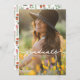 Faire-part de graduation bohème bohème de boho moderne fleurs sauvages vives. Fleurs botaniques aux teintes roses, pêche et vertes inspirées des jardins rustiques aux couleurs fleurs sauvages et aquarelles avec une végétation subtile et typographie boho moderne sur arrière - plan blanc. Avec votre plus belle photo devant.