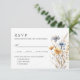 Conçue pour se coordonner avec notre collection de mariage BOHO SPRING SUMMER WILDFLOWERS, cette élégante carte de réponse botanique présente un bouquet champêtre chic aquarelle de fleurs de prairie et de feuillage sur le côté droit de la carte avec la date de réponse souhaitée et le choix du repas ou les sélections d'entrée.