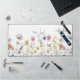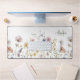 Apportez la fraîcheur d'un jardin fleur sauvage extérieur dans votre maison, studio ou bureau d'affaires avec ce design boho design fleur sauvage aquarelle dans les teintes pastel douce rose, bleu perwinkle, blanc cassé et jaune avec des tiges délicates et la verdure. Un modèle texte est inclus pour personnaliser avec votre nom et votre initiale monogramme.