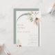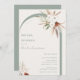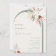 Invitation à la douche nuptiale en arc fleuri de Bohême. Fleurs d'aquarelle de style boho, gazon de pampas et cadre vert délicat feuillage sur arrière - plans beige et vert sauge.
