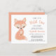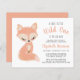 Jolie invitation à saupoudrer pour petite fille "sauvage" à petit budget avec une aquarelle de sauce de sauce de sauce avec une illustration de jolie boule de renard rose et en terre cuite. "Wild One" et le nom de la future mère sont dans un script terre cuite.