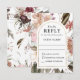 Un imaginaire boho merveilleusement belle aquarelle fleurie mariage réponse carte design avec une somptueuse palette de couleurs neutres en beige, vert, pêche, et des teintes de rose et de terre cuite. Un beau cadre voûté avec accent or ajoute de l'élégance au design. Le dos de la carte a un joli motif fleuri assorti avec des éléments floraux éparpillés dans le design. Personnalisez avec la date de réponse requise.