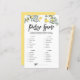 Qu'y a-t-il dans votre sac à main ? Ajoutez cette carte de jeu de baby shower botanique amusante et ludique à votre événement. Il présente des illustrations aquarelles de citrons et de verdure. Vous pouvez personnaliser la carte en ajoutant des textes. Ce sac à main à la douche au citron est parfait pour les douches nuptiales du printemps et de l'été.