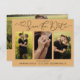 Moderne 4 photos de couple Mariage Sauvegarder la date faire-part carte modèle avec l'information du site et le coeur mignon en police de caractères boho jaune.