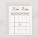 Boho Baby Bingo, baby shower feuille de jeu avec coordination motif beige dos.