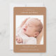 Elégant design moderne aquarelle de style bohème avec des détails beige et marron neutre abstrait. Script introduction ligne, et moderne sans serif polices de typographie sans serif. Espace sur le devant pour une grande photo unique avec statistiques de naissance, y compris la date et l'heure de naissance, ainsi que le poids, la longueur et la ligne courte d'un bébé avec le nom des parents. Le côté arrière comporte deux espaces photo supplémentaires.
