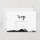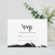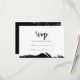 La carte rsvp de mariage chic boho romantique comporte des plumes et un arrière - plan noir.