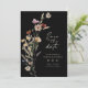 Boho Noir Enregistrer La Carte Plat Date. Cette carte de faire-part élégante et élégante, à la fois moderne et moderne, présente de magnifiques fleurs sauvages d'aquarelle peints à la main, disposés comme une jolie couronne, parfaite pour le printemps, l'été ou les mariages de automne. Recherchez les éléments correspondants dans la collection de Mariages de Fleur sauvage Boho.