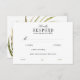 Doté de texte noir, le rsvp en belle typographie crée un look moderne propre. Possède un feuillage d'aquarelle en feuille de palme simple et subtile sur la couleur du texte inverse et noir (qui est entièrement personnalisable dans l'outil de conception.)