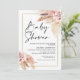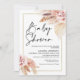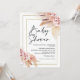 Boho Pampas Baby shower en laiton Invitation baby shower d'inspiration bohème avec deux arrangements floraux de couleur terre et rose pâle avec gazon de pampas et une image calligraphie moderne comme titre. Idéal pour toute personne ayant un baby shower d'inspiration bohème pour une fille.