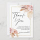 Boho Pampas Baby shower en laiton Carte de remerciements en baby shower d'inspiration bohème avec deux arrangements floraux de couleur terre et rose pâle avec gazon de pampas et une image calligraphie moderne comme titre. Idéal pour n'importe qui a eu le baby shower d'inspiration bohème d'une fille.