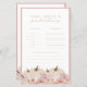 Ajoutez un jeu de baby shower amusant et sur le thème à vos plans d'évènements ! Ce design présente des citrouilles d'aquarelle rose et d'ivoire avec de l'herbe pampa et des accents floraux. Ce design est entièrement personnalisable ET double face pour plus de plaisir et de polyvalence!