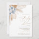 Invitations amis et famille à partager dans la joie de l'arrivée de votre petit avec cette invitation baby shower, avec feuillage tropical et fleurs bleues.