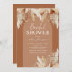Des invitations à la douche à la nuptiale bohème rustique avec un arrière - plan en terre cuite orné d'une arche, des feuilles de palmiers séchés à l'aquarelle dans le désert, de l'herbe à la pampa et un élégant modèle de fête de mariée facile à personnaliser.
