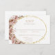Cette carte de réponse RSVP à thème de mariage boho présente des aquarelles brillantes de l'herbe de pampas dans des teintes roses poussiéreuses et des sous-tons chocolat subtils. Roses crème douce accent parties scintillant or cadre ovale créant une présentation élégante pour vos invités. Conçu pour coordonner avec notre collection Boho Pampas Grass Mariage. Customisez les détails importants en ajoutant la date de réponse et les choix de repas souhaités.