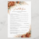Boho tropical terracotta pampas Finish the Lyric bridal shower game, Ce design populaire branché est parfait pour tous les boho ou style tropical Événements. Design est présenté aquarelle peint à la main pampas herbe roseaux mélangé palmier séché feuille mélangé fleurs en terre cuite et mélangé orange brûlé roses mélangé fleurs de cuivre désert roses et mélangé fleurs bordeaux rose mélangé des fleurs rouillées terre et touché vert eucalyptus et combiné calligraphie moderne police. Si vous planifiez des fêtes sur la plage ou tropicale, ce design est fait pour vous. Sentiment boho et vision remarquable. Fleurs d'orange brûlées mêlée de roses bordeaux mélangé fleurs de terre cuite et arrangement vert eucalyptus et combiné police de script tendance rend ces éléments de conception si étonnant. Utilisé avec succès pour Mariage, Fête des mariées, Fiançailles, Baby shower, Anniversaire ou tout événement. Dans cette collection, vous trouverez tous les éléments pour votre fête tels que les invitations de mariage, les invitations de douche nuptiale, les invitations de douche bébé, les tableaux de sièges, les menus, les programmes, les étiquettes, les étiquettes, les affiches, les affiches et bien plus encore. Bon appétit ! Contactez-moi pour les articles correspondants ou pour la personnalisation, Roses Blush ©