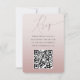 Cette carte RSVP simple et élégante est dotée d'une superposition élégante en or rose, ajoutant une touche de luxe moderne à votre papeterie mariage. Conçu pour votre commodité, il comprend un modèle de code QR, permettant de répondre sans effort. Le revers présente votre monogramme personnalisé, créant un détail raffiné et élégant qui améliore le design général. Parfait pour les thèmes mariage contemporains, minimalistes ou romantiques, cette carte RSVP est à la fois fonctionnelle et joliment conçue. Customisez-le facilement avec vos détails uniques pour créer une expérience inoubliable pour vos invités.