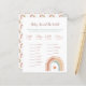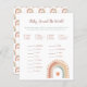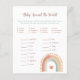 Ajoutez du plaisir à votre fête avec cette carte de jeu baby shower arc-en-ciel boho! Conçue avec des arcs-en-ciel doux et des tons chauds, elle est une activité idéale pour les douches sans sexe ou à thème boho. Ce jeu magnifiquement coordonné fait un ajout inoubliable à votre programme de fête et garde les invités souriants tout au long de la soirée.