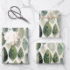 Ces feuilles de papier d'emballage présentent une aquarelle boho motif de feuillage feuille dans les tons vert sauge.