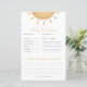 Brille un peu de lumière sur l'avenir avec ce jeu amusant et coloré Boho Sunshine Baby shower de prédiction et de conseil jeu! Les clients aimeront faire des prédictions sur l'arrivée du petit, de l'anniversaire et du poids aux premiers mots et aux premiers aliments.