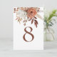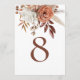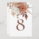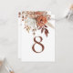 Boho Terracotta Florals d'automne Numéro de tableau. De belles fleurs et des herbes automnales dans les tons automnaux de crème et de marron en terre cuite sont au sommet. Personnalisez facilement le numéro de table qui est dans l'écriture de couleur brune terre. Le même design est de l'autre côté.