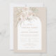 Brun roux | Beige Boho Faire-part de mariage d'aquarelle tropicale. Élégante, chic et moderne, la suite Neutral Boho Mariage est dotée de belles roses roses roses rose vif peintes à la main, de feuilles de palmiers séchés aux tons beiges et tan, de feuilles vert sauge pâle sur un cadre en arc de bouho blanc, parfait pour un style mariage bohème monochromatique. Trouvez les produits correspondants dans la suite Mariage Neutral Boho. Conçu de manière professionnelle par la Paperie Peinte.